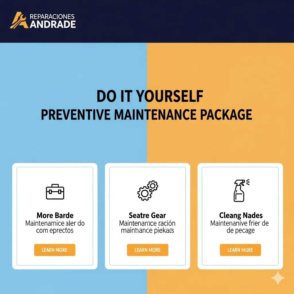 Este paquete de mantenimiento contiene todo lo necesario para la prevención de averías. Incluye una cinta selladora de fontanería, un lubricante multiusos para bisagras y cerraduras, y un sellador de silicona para baños y cocinas. Cada producto viene con instrucciones detalladas, respaldadas por la experiencia de Reparaciones Andrade. Es la solución ideal para aquellos que quieren ser proactivos con el cuidado de su hogar, prolongando la vida útil de sus instalaciones y evitando futuras reparaciones costosas.